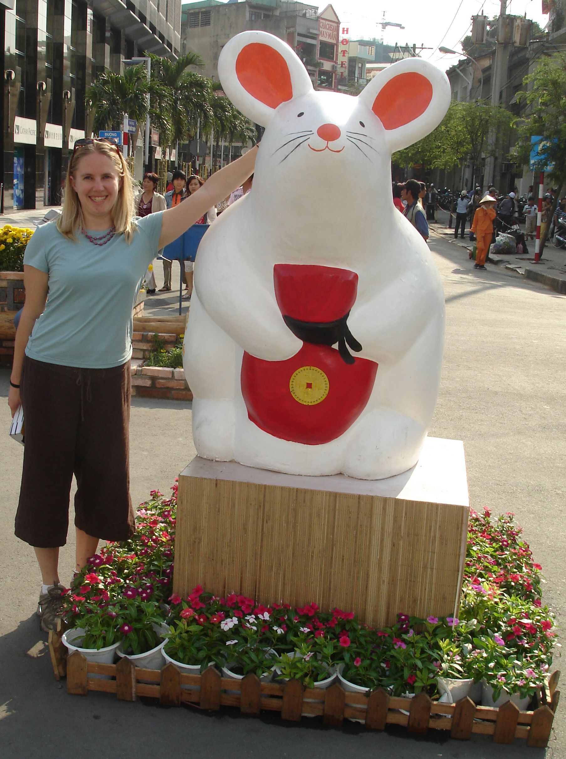 So that night we got to see a little countdown to the lunar new year, complete with dancing animals representing the Chinese Zodiac (monkey, dragon, ox, etc.). 2008 is the year of the Rat. Speaking of rats, the next day as we were looking around during the daylight, we got to see all the cool things they had set up on a main street - perfect for photo op’s.