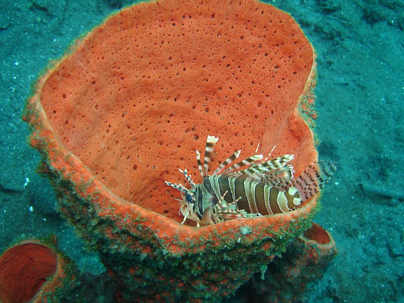 Leaf scorpion fish were all around, but you have to look closely because they really do look and move like leaves in the water. Even their eyes look like holes in a leaf. There were tons of lion fish and puffer fish; there were nudibranches of every size and color and even a pair mating.